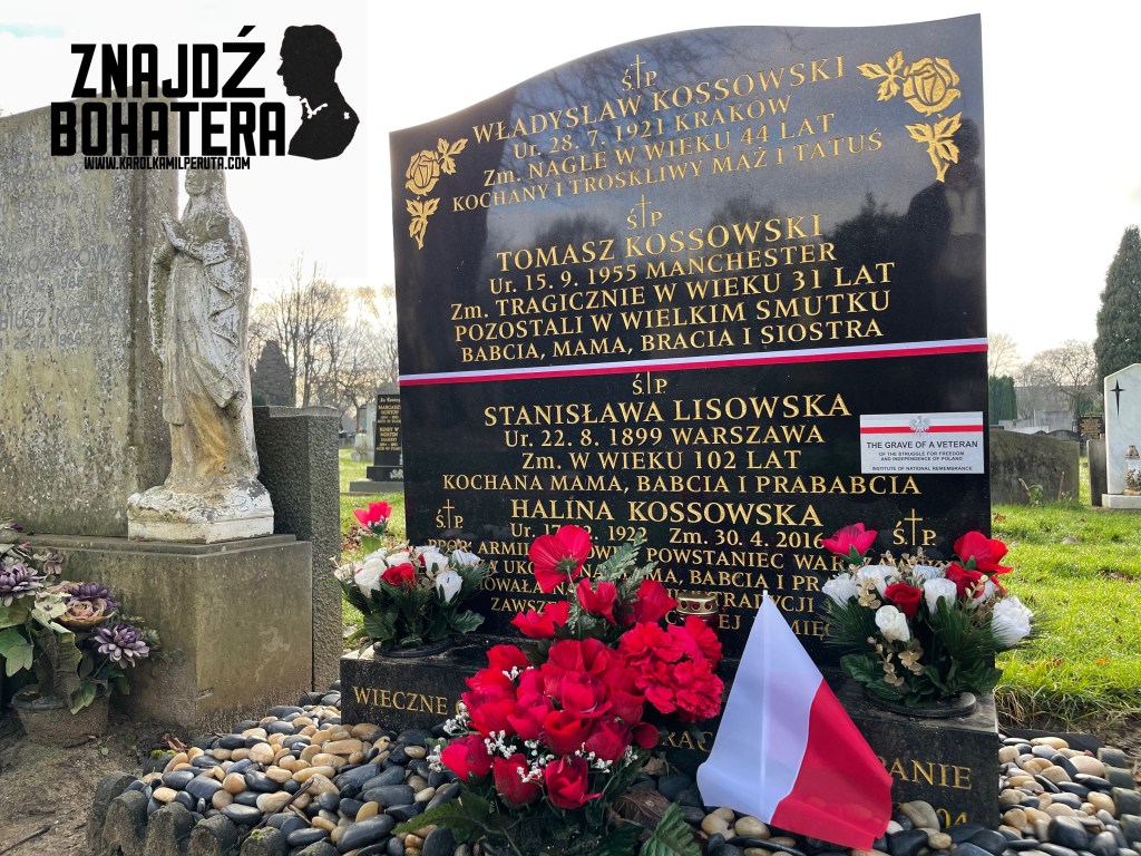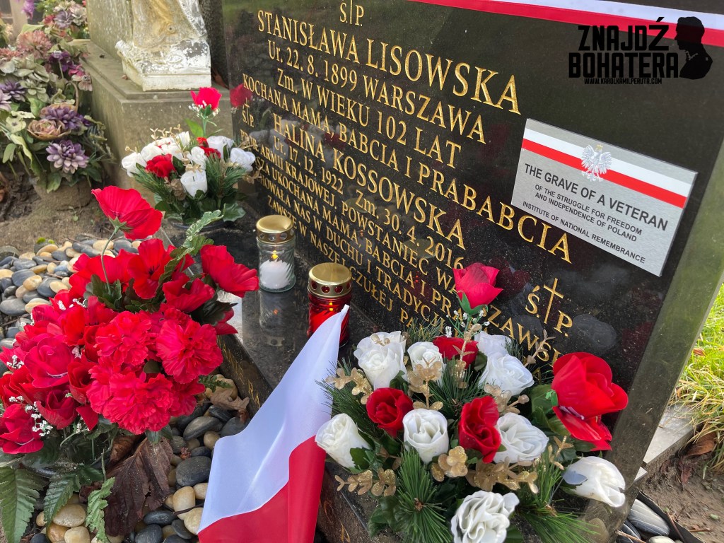 ZAWARTOŚĆ: KOPIA zaświadczenia rejestracji grobu Ś.P. Porucznik Haliny Kossowskiej jako „Grób Weterana walk o wolność i niepodległość Polski”.