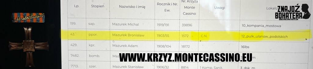 – ODZNACZONY KRZYŻEM MONTE CASSINO O NUMERZE: 1572