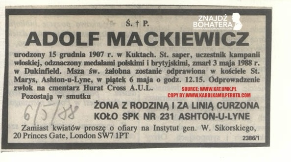 POMÓŻ MI UZUPEŁNIĆ DANE, PROSZĘ O KONTAKT JEŻELI POSIADASZ INFORMACJE O DANYM BOHATERZE: KAROLKAMILPERUTA@GMAIL.COM
