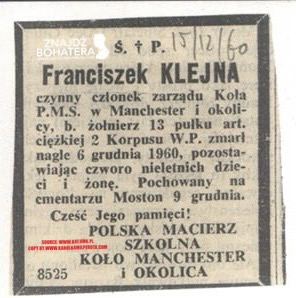 MIEJSCE POCHÓWKU: ST. JOSEPH’S CEMETERY, MOSTON LANE, M40 9QL, MANCHESTER, WIELKA BRYTANIA.