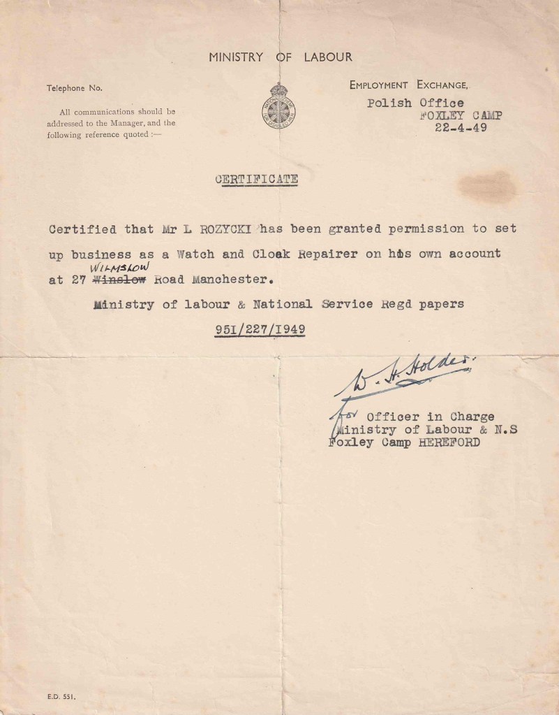 22 kwietnia 1949 Kapitan Ludwik Różycki wraz z przyjacielem panem Słojewskim otrzymuje pozwolenie na otwarcie zakładu zegarmistrzowskiego o nazwie „Eres” który znajdował się na ulicy 27 Wilmslow road na dzielnicy Rusholme w Manchesterze.