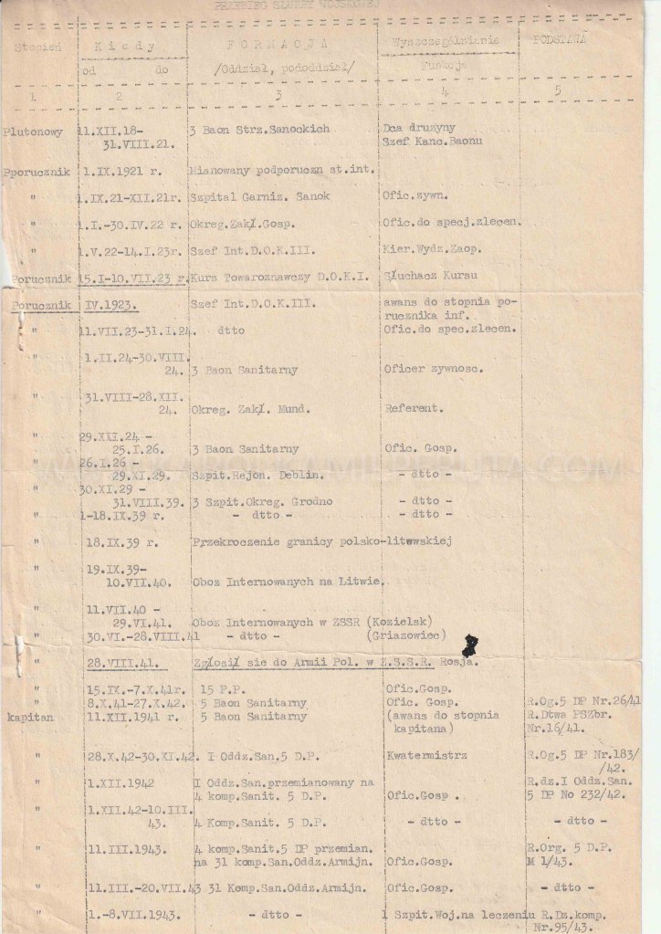 7-ego Października 1941 roku Podporucznik zostaje przydzielony do 5 Batalionu Sanitarnego który w późniejszym czasie zostaje przemianowany na 31 Kompanię Sanitarną oddziałów II-ego Korpusu. Tego samego roku w grudniu Podporucznik Ludwik Różycki zostaje mianowany Kapitanem.