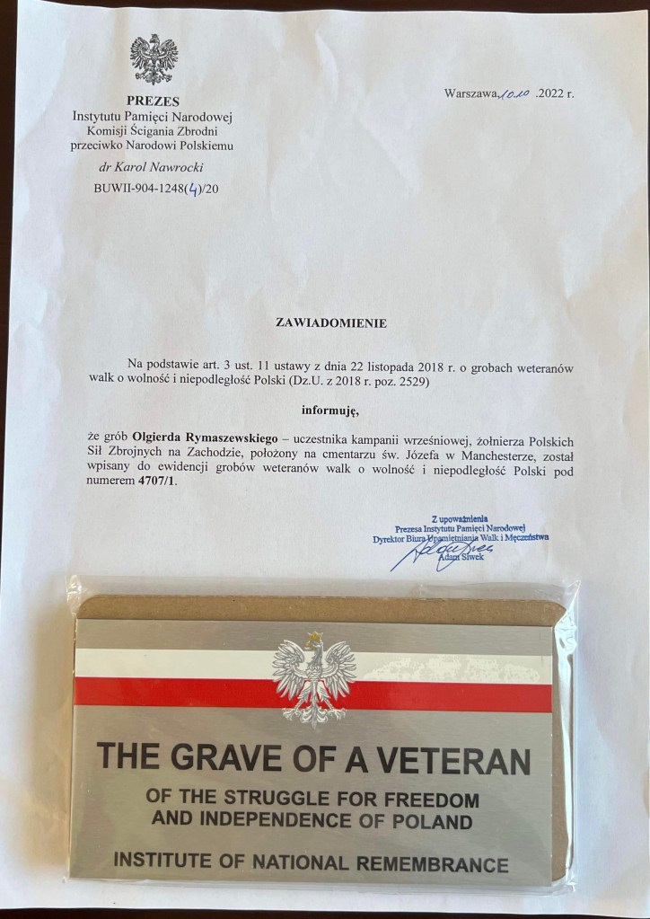 Było jak zawsze, przyszedł listonosz a ja pokwitowałem odbiór szaro żółtej koperty. Dobrze wiedziałem co jest w środku, przyszło ich już wiele na mój adres. To przesyłka z Instytutu Pamięci Narodowej a w niej 7 tabliczek i 9 zaświadczeń o kolejnym pozytywnym rozpatrzeniu moich i mojego tata wniosków, o rejestrację grobów Polskich Weteranów w Manchesterze. Jednak jedno zaświadczenie było szczególne a za nazwiskiem na nim kryła się dobrze znana mi historia, historia która słyszałem od samej bohaterki. Jedna z wielu, jedna z ponad setki innych skrywanych historii wśród tych zapomnianych grobów.