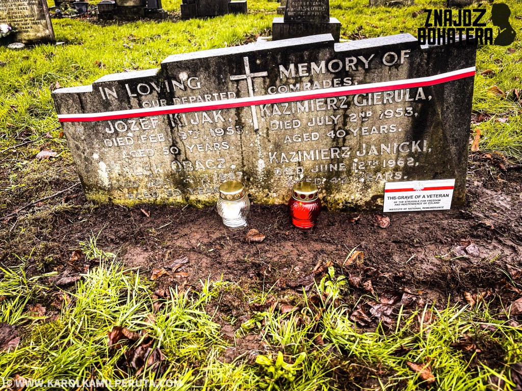 Oznaczenia wspólnego grobu trzech Weteranów 2-ego Korpusu Polskiego, Ś.P. Kazimierza Gierula, Kazimierza Janickiego oraz Aleksandra Obacza oficjalna tabliczką Instytutu Pamięci Narodowej, dokonała pani Wiesława Kalupa, wieloletnia działaczka stowarzyszeń Weteranów i grup polonijnych w Wielkiej Brytanii. To dzięki pani Wiesławie i rodzinom spoczywających tu bohaterów trafiliśmy na ten cmentarz i odnaleźliśmy tych żołnierzy. Upomnimy się o każdego z nich, tak jak obiecaliśmy.