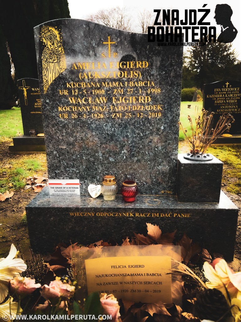 ZAWARTOŚĆ: KOPIA zaświadczenia rejestracji grobu Ś.P. Wacława Ejgerda jako „Grób Weterana walk o wolność i niepodległość Polski”.