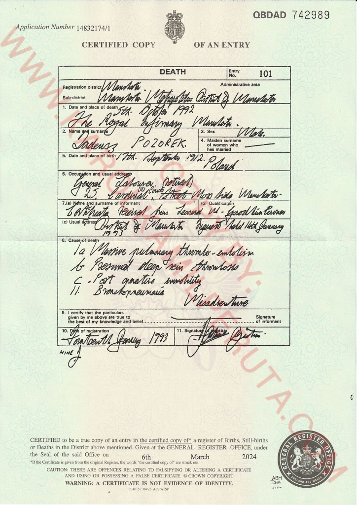 RODZINA PROSI O JAKIEKOLWIEK INFORMACJE O Ś.P TADEUSZU POZOREK ORAZ O ZDJĘCIE MIEJSCA SPOCZYNKU.
